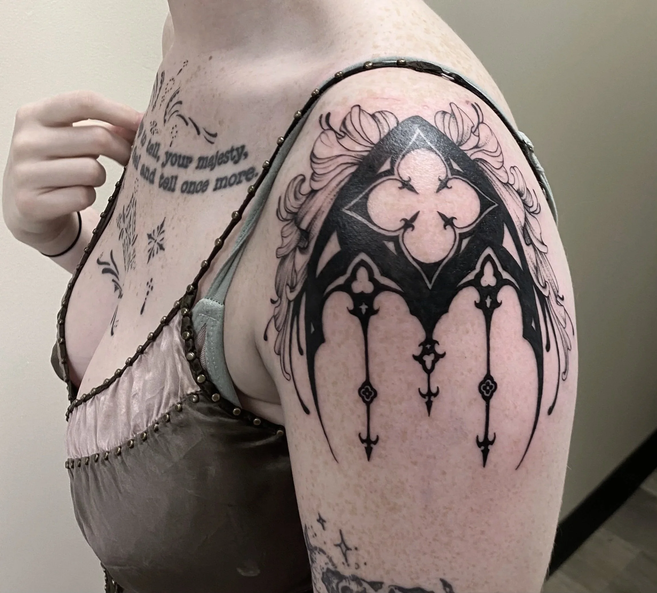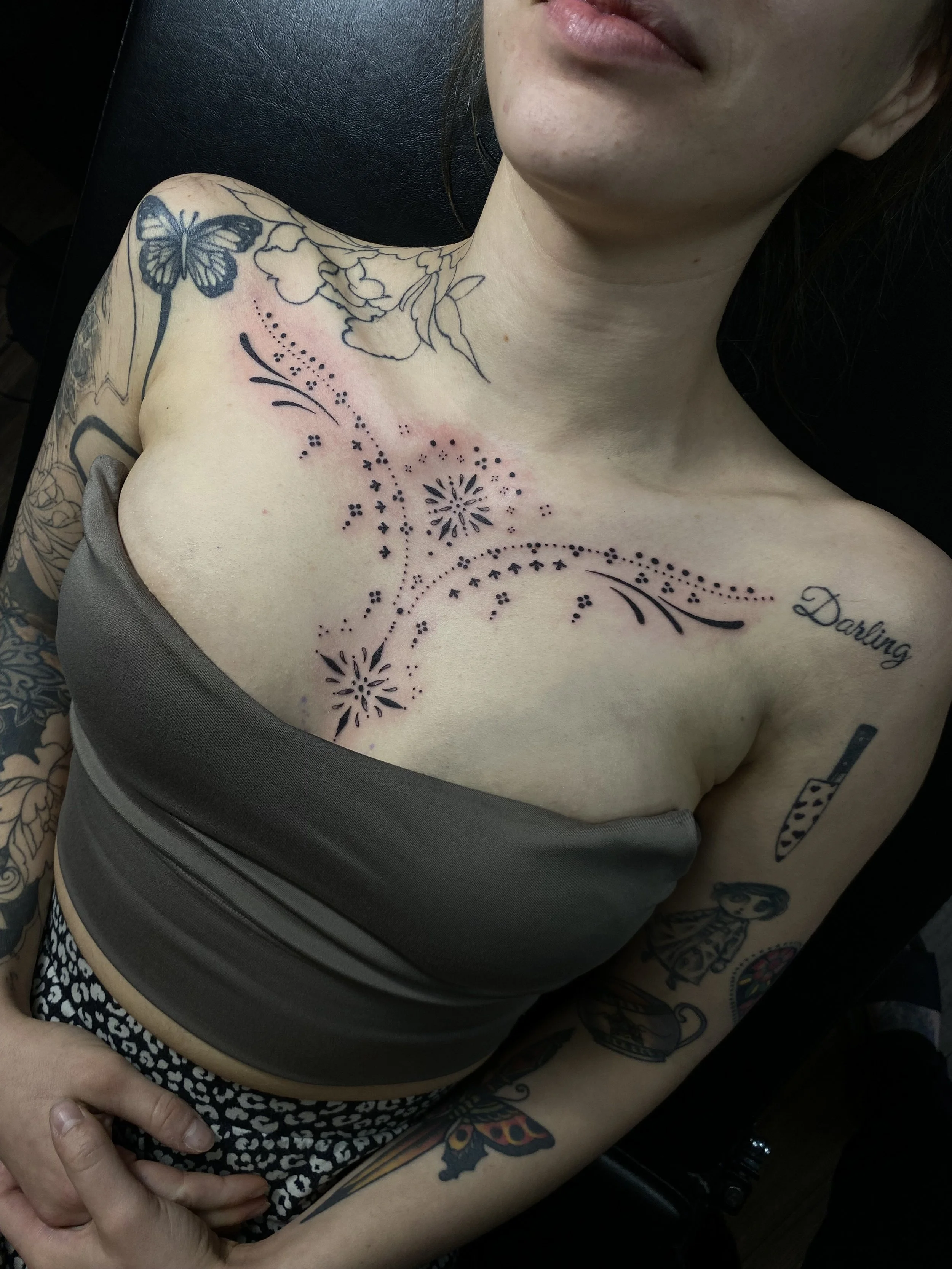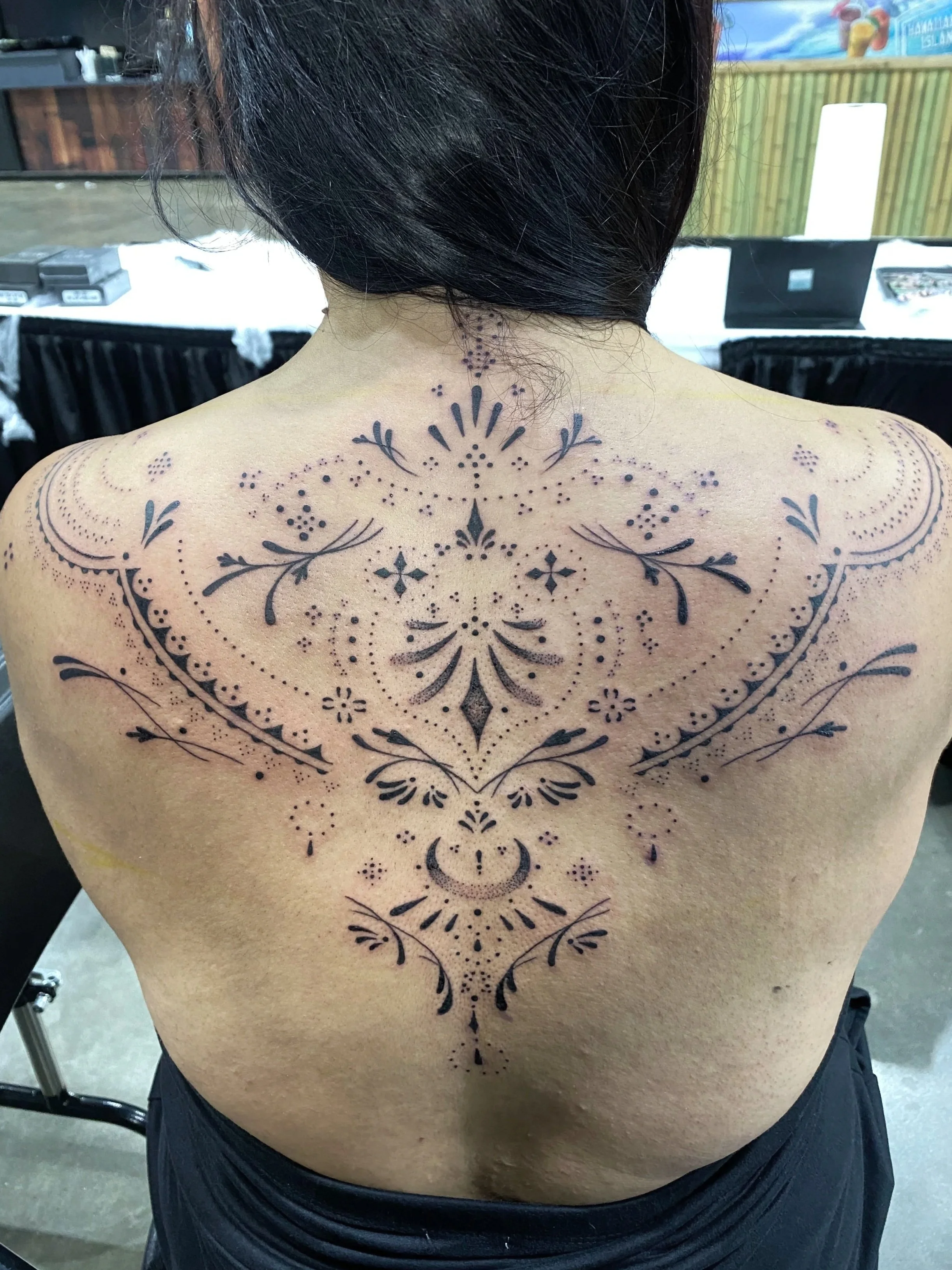 Elsey is an artist specializing in dotwork, ornamental, and symmetrical tattoos. Her designs delicately sweep the body to frame the real art. You.